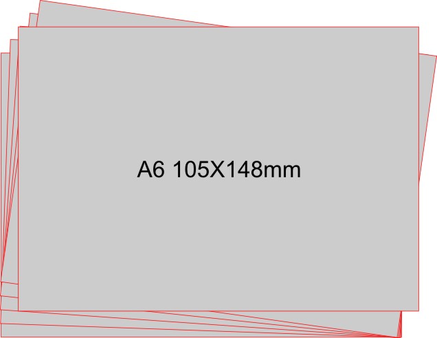 Formát A6 105/148mm. Plnofarebná, obojstranná (CMYK) tlač, na biely, obojstranne natieraný matný kartón s gramážou 250g/m²na stroji Xerox1000.